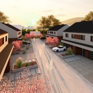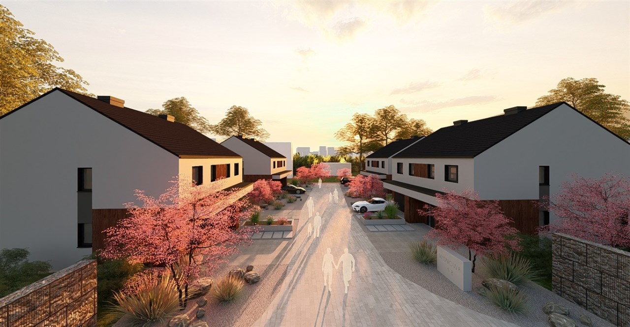 Kameralne osiedle składa się z 4 budynków, w każdym znajdziesz 2 dwukondygnacyjne mieszkania. Łącznie na osiedlu planowanych jest 8 takich lokali.
