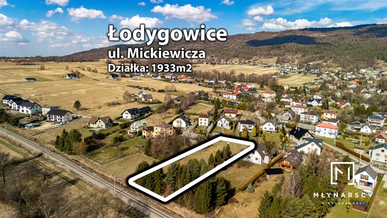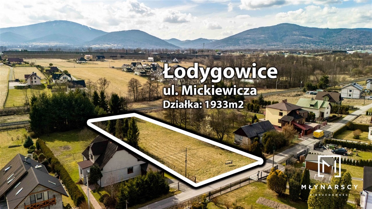 Działka zlokalizowana jest w Łodygowicach (gmina Łodygowice ) przy ul. Mickiewicza. Działka ma kształt zbliżony do prostokąta i stanowią doskonałą propozycję dla osób marzących o domu w zielonym otoczeniu z łatwym dojazdem do Bielska-Białej oraz Żywca.