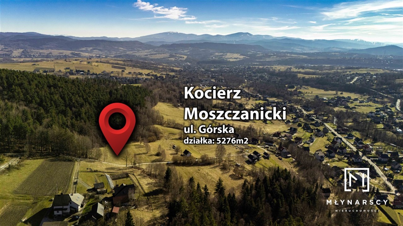 Kocierz Moszczanicki, ul. Górska – widokowe miejsce w górskiej okolicy. Blisko szlaków beskidzkich, otoczone lasami i terenami zielonymi. Doskonała na dom z panoramą.​​