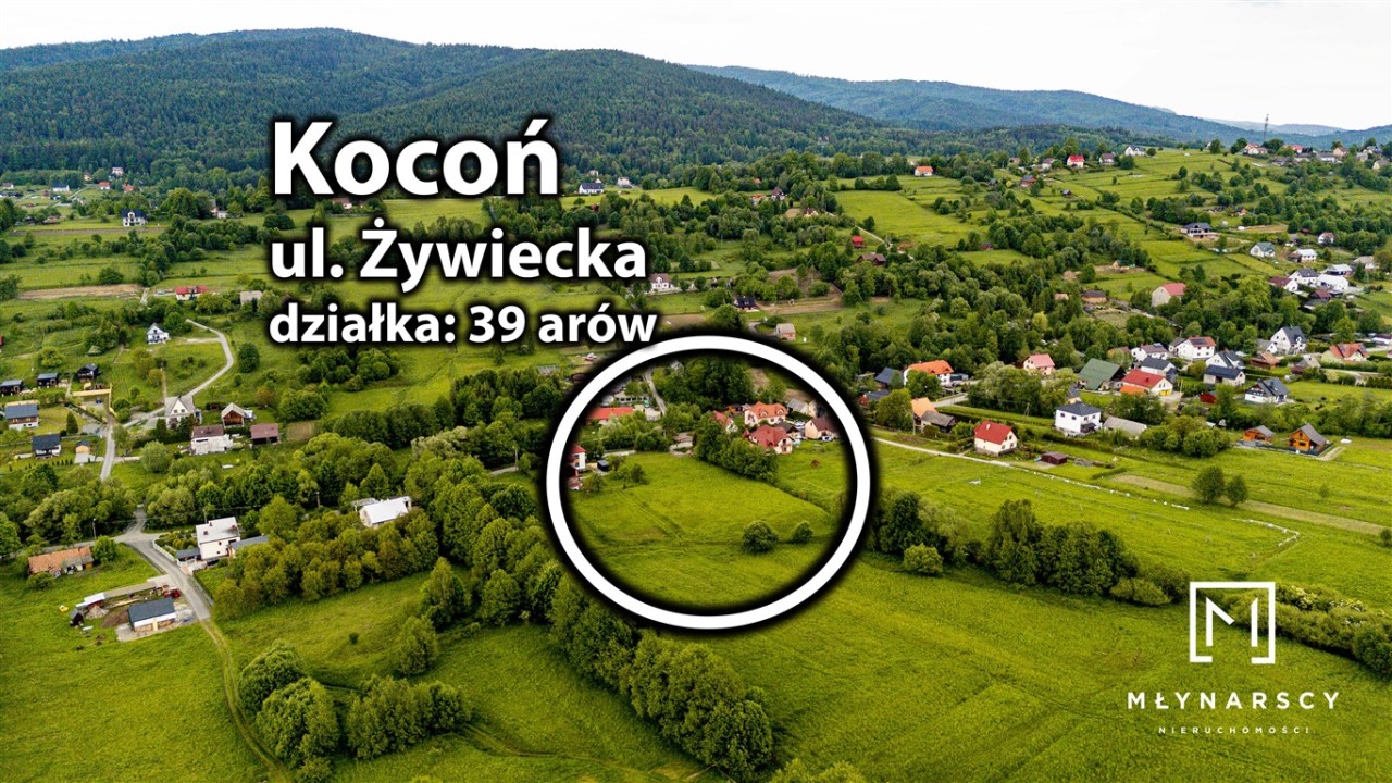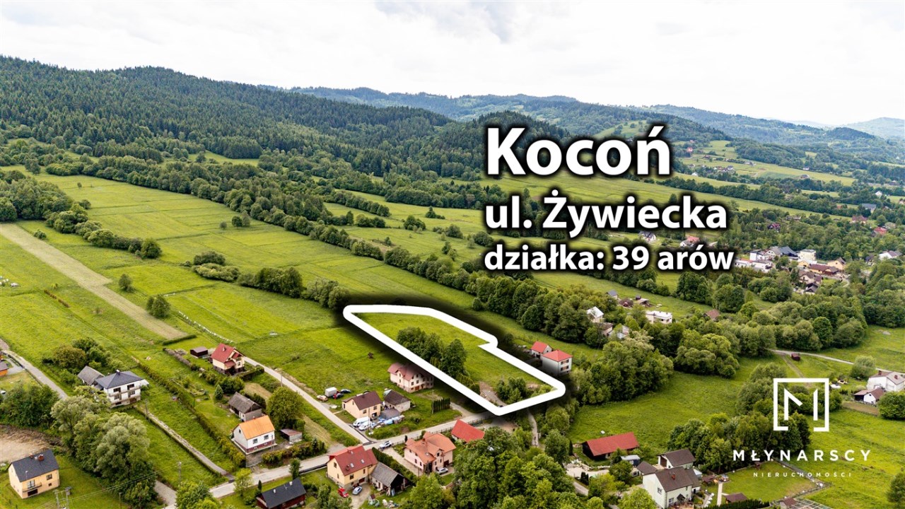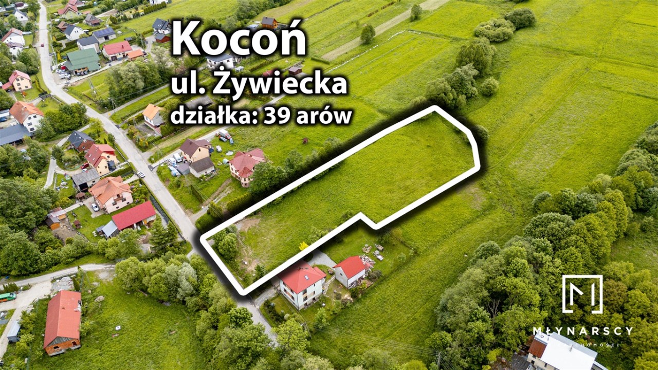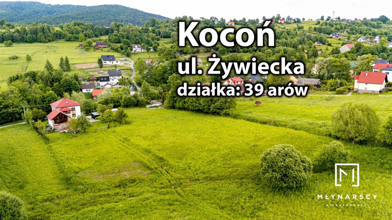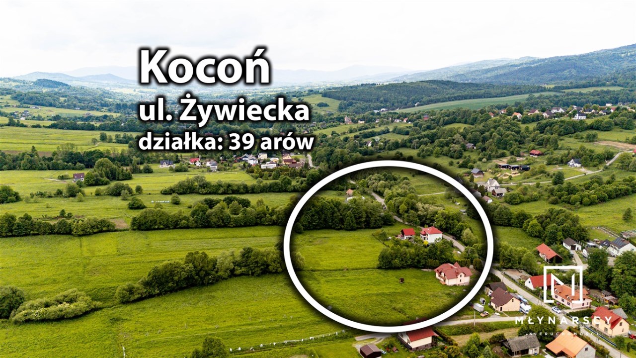 Widokowa działka budowlano-usługowa 3955 m² w Koconiu przy ul. Żywieckiej – dom z widokiem na góry + potencjał usługowy
