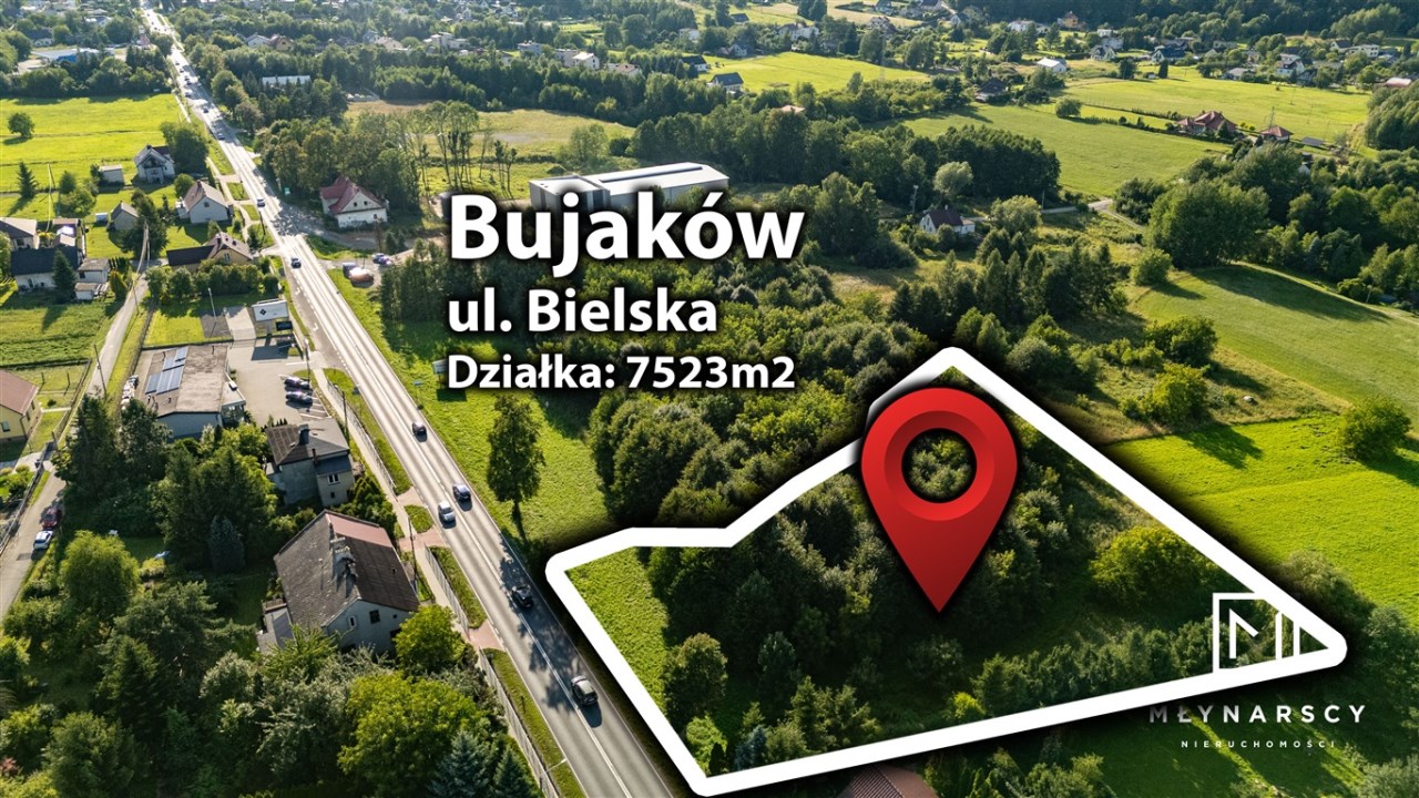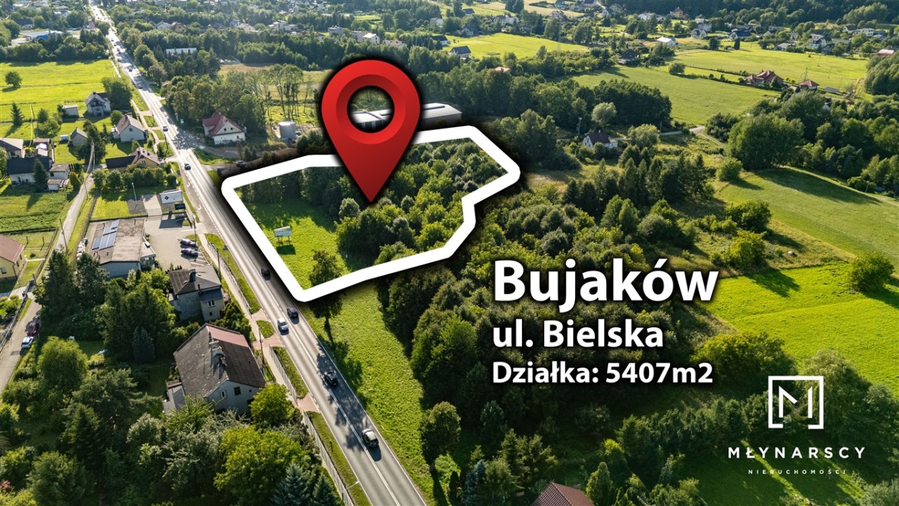 Działka z potencjałem inwestycyjnym w Bujakowie, tuż obok drogi krajowej nr. 52.