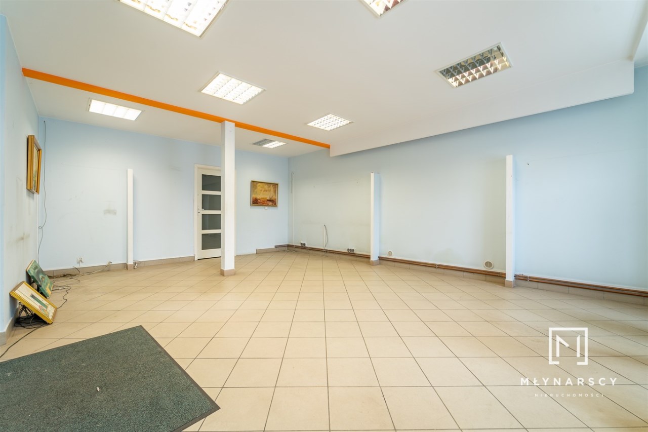 Do wynajęcia lokal handlowo-usługowy składający się z pomieszczenia o powierzchni ok. 33,5 m2,pomieszczenia o powierzchni ok.11,5 m2 m2 oraz toalety z zapleczem socjalnym o powierzchni ok. 5,4 m2.  Wyposażony we wszystkie media. Centralne ogrzewanie z pieca gazowego dwufunkcyjnego. Cały lokal po generalnym remoncie przed kilku laty. Dobry standard, idealnie nadaje się na siedzibę firmy, gabinety lekarskie, kancelarie adwokacką.