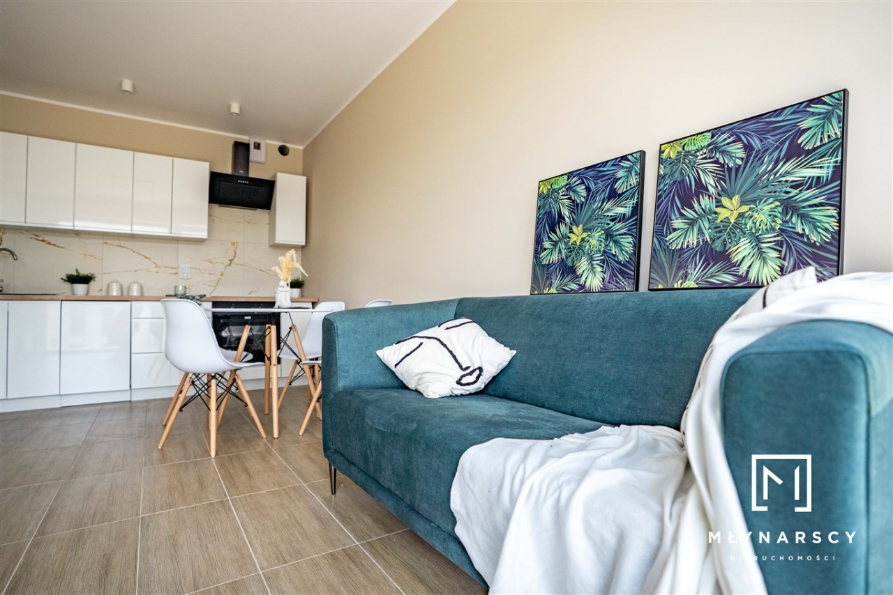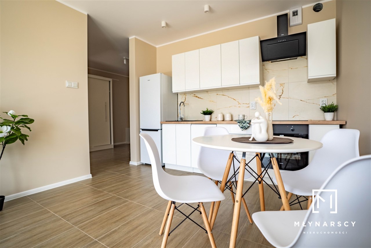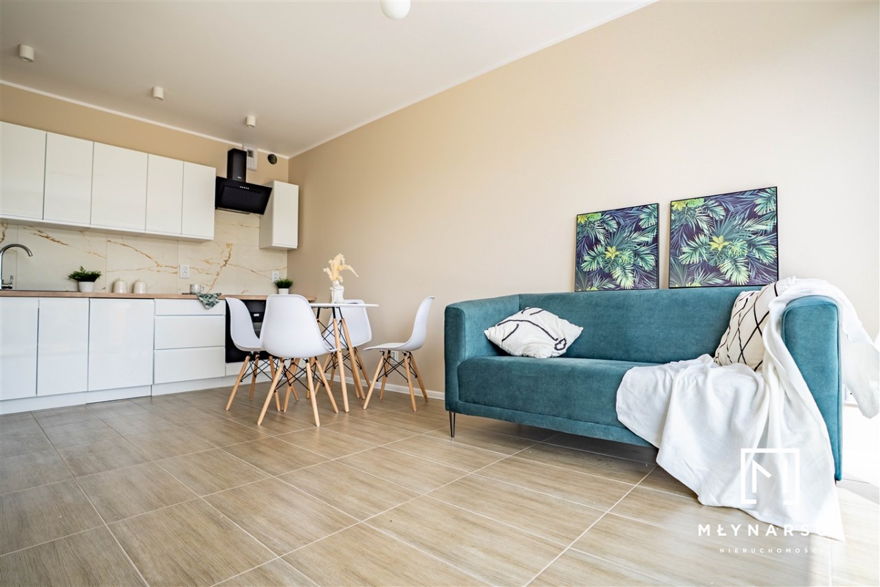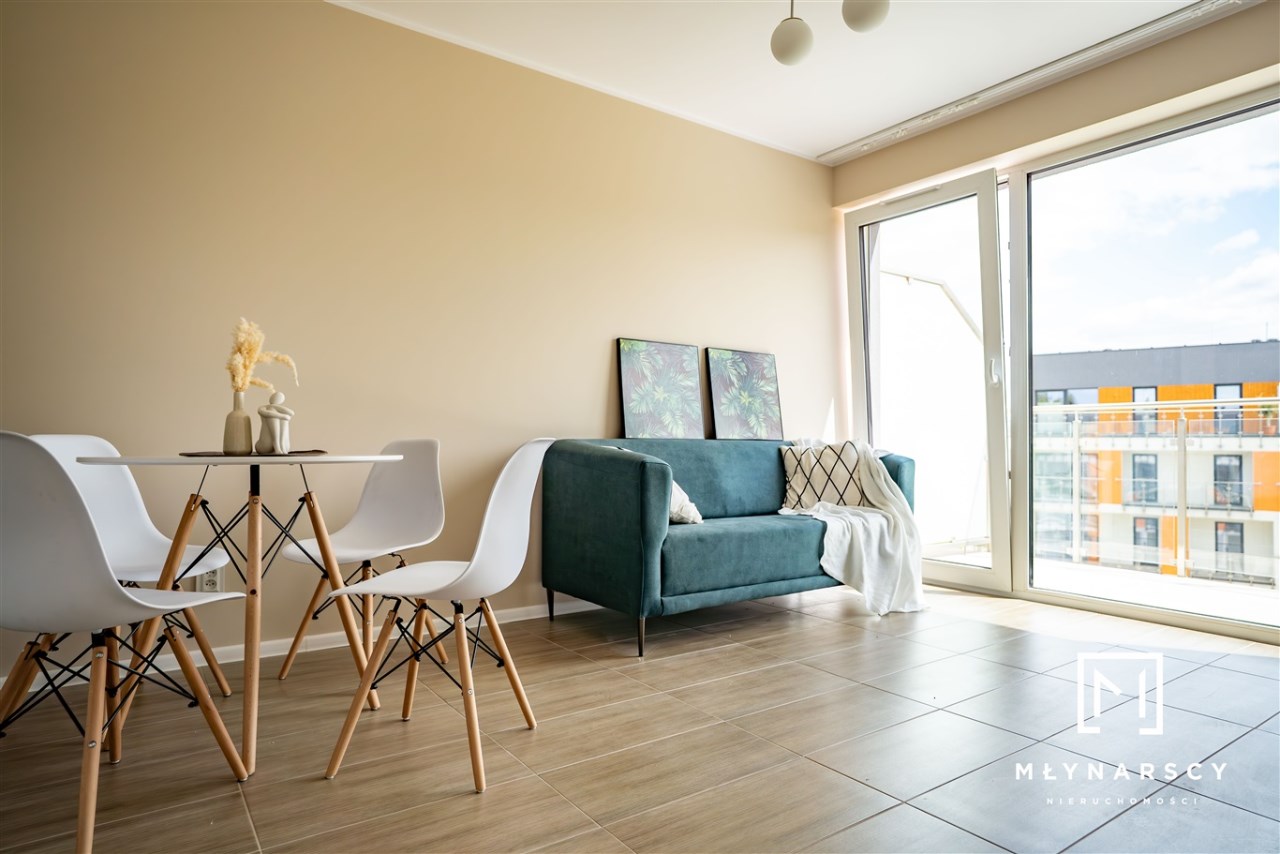 Nowoczesne, świeżo wyremontowane mieszkanie z dużym balkonem i pełnym umeblowaniem, zlokalizowane na nowym zamkniętym osiedlu w świetnej lokalizacji dzielnicy Gołonóg – idealne dla pary lub singla.