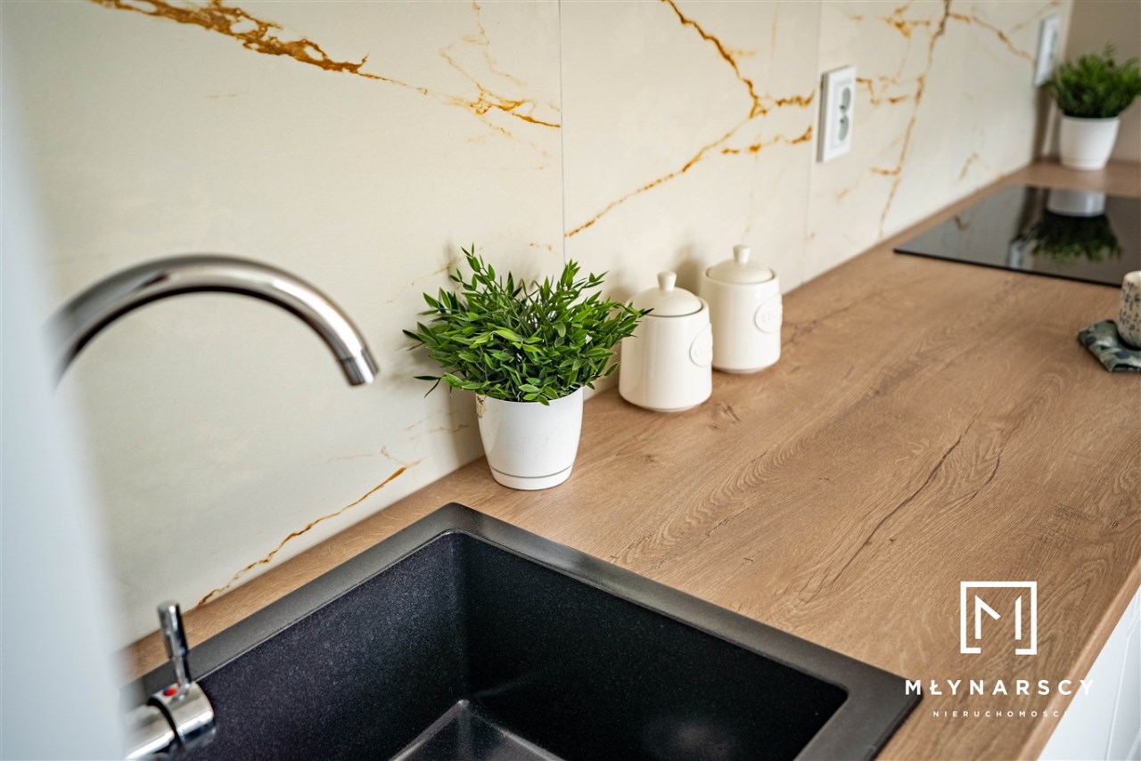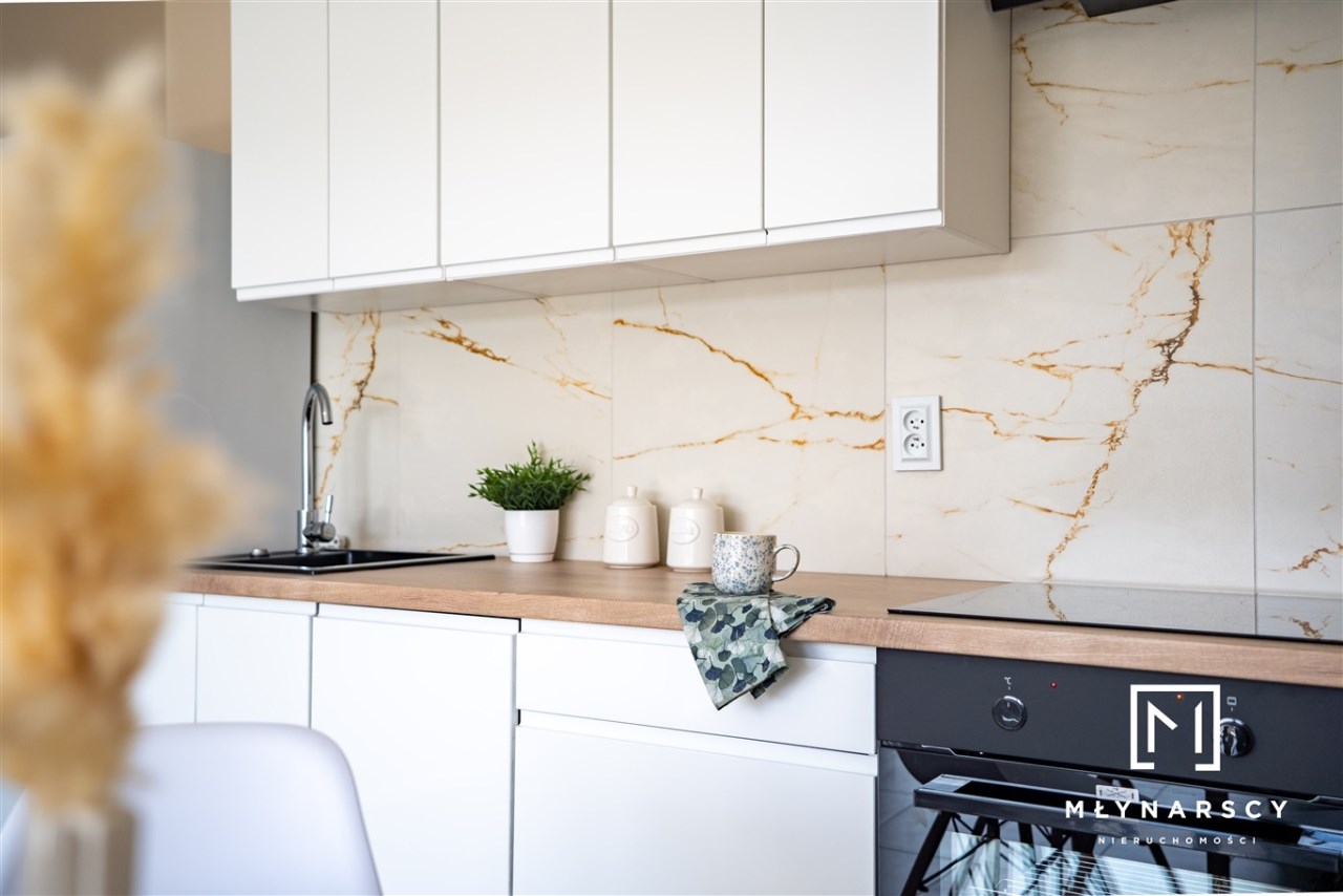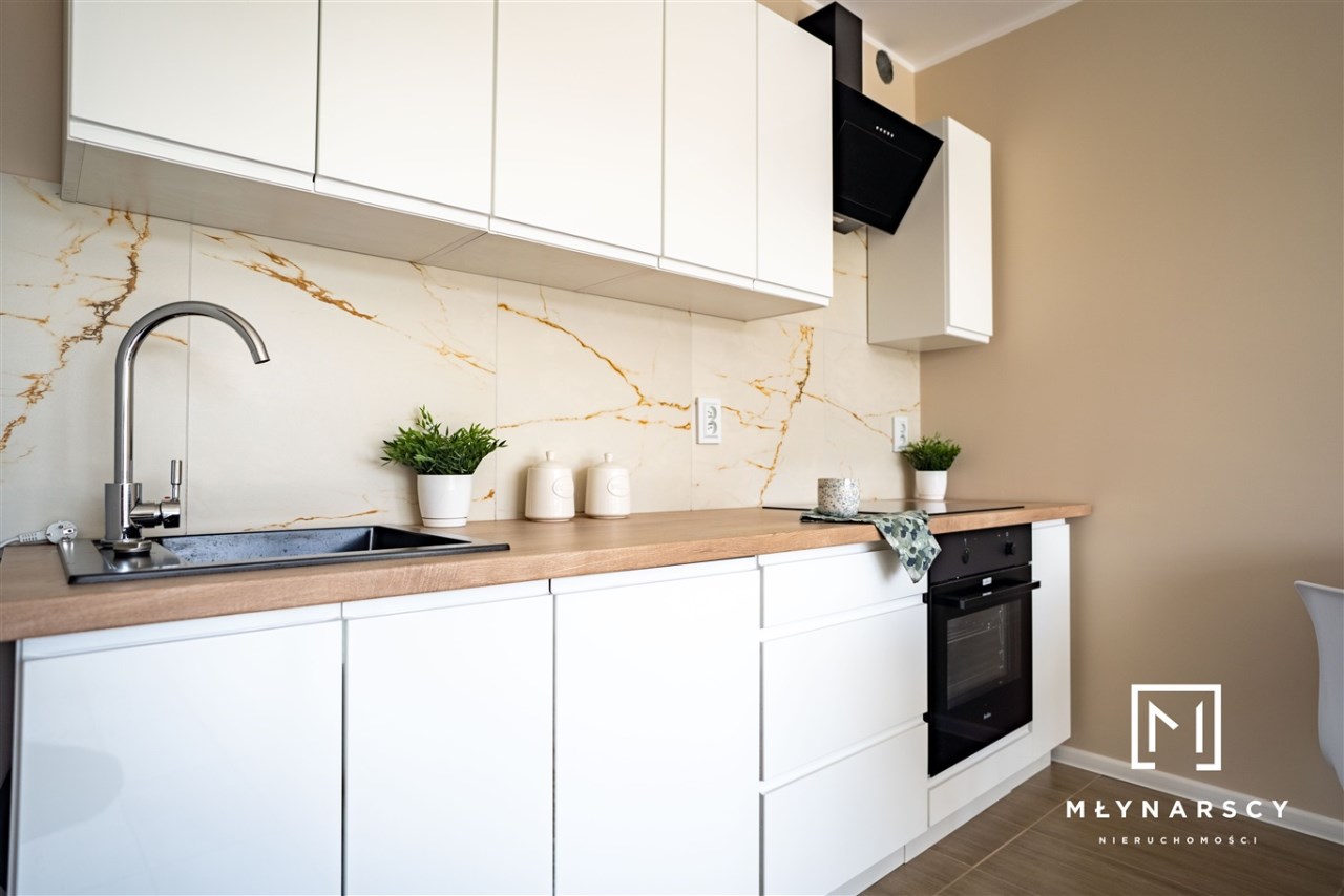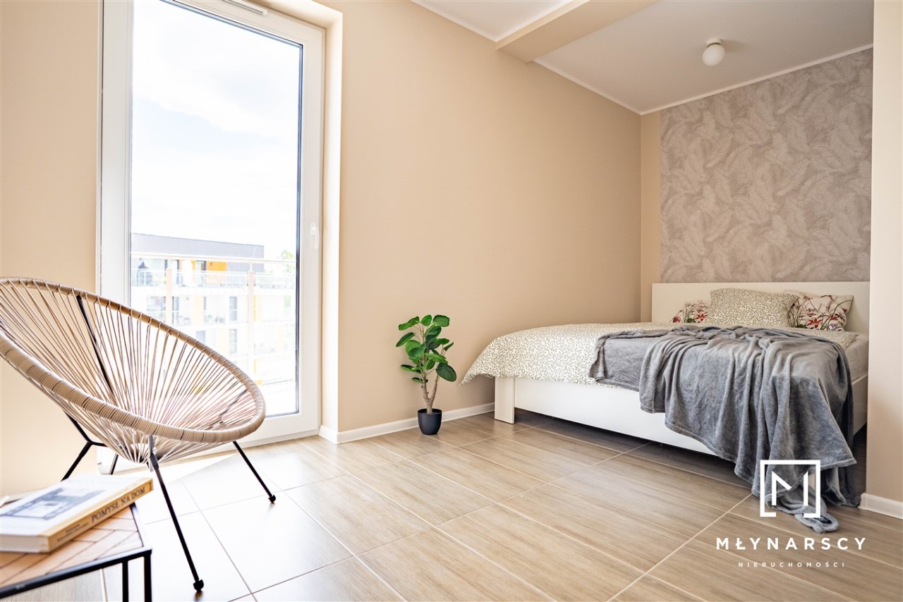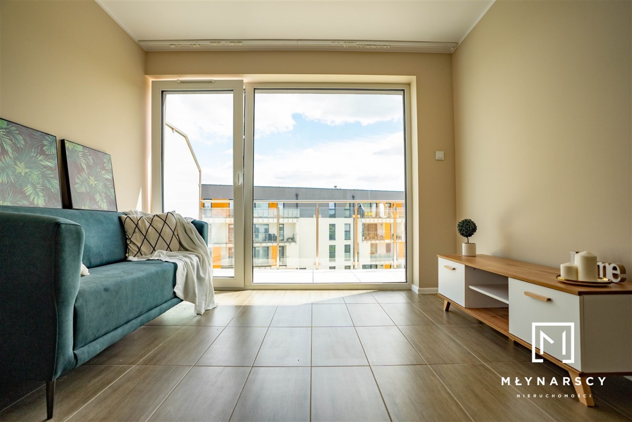 Nowoczesne, świeżo wyremontowane mieszkanie z dużym balkonem i pełnym umeblowaniem, zlokalizowane na nowym zamkniętym osiedlu w świetnej lokalizacji dzielnicy Gołonóg – idealne dla pary lub singla.