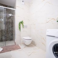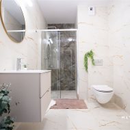 łazienka z kabiną prysznicową i WC,
