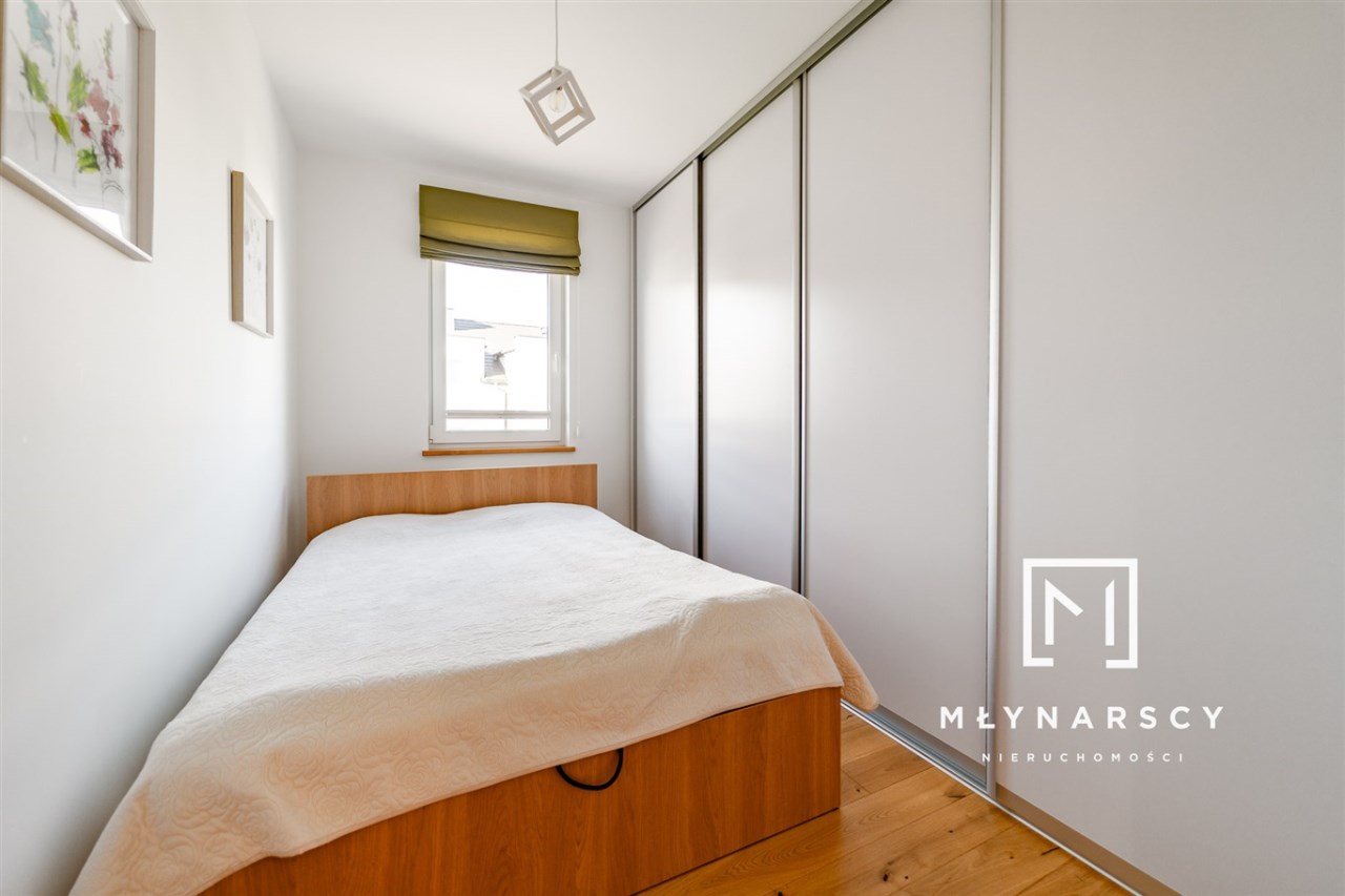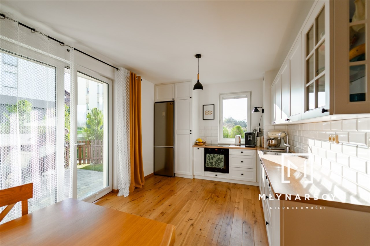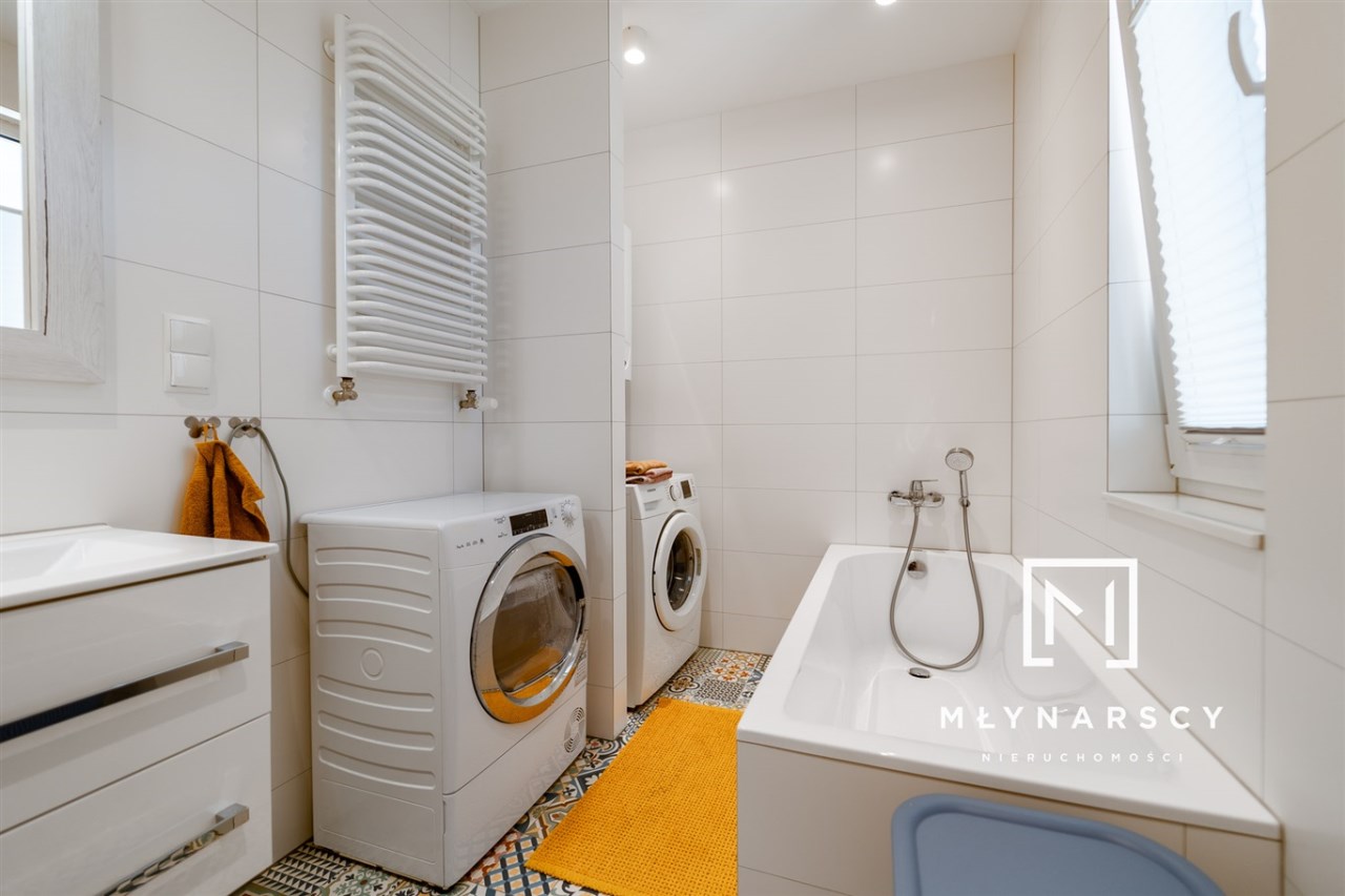 Można się do niego wprowadzić bez przeprowadzania remontów czy poprawek. Wykończone jest materiałami wysokiej jakości, gustownie urządzone i funkcjonalne (świetną powierzchnię magazynową stanowią szafy w zabudowie).
